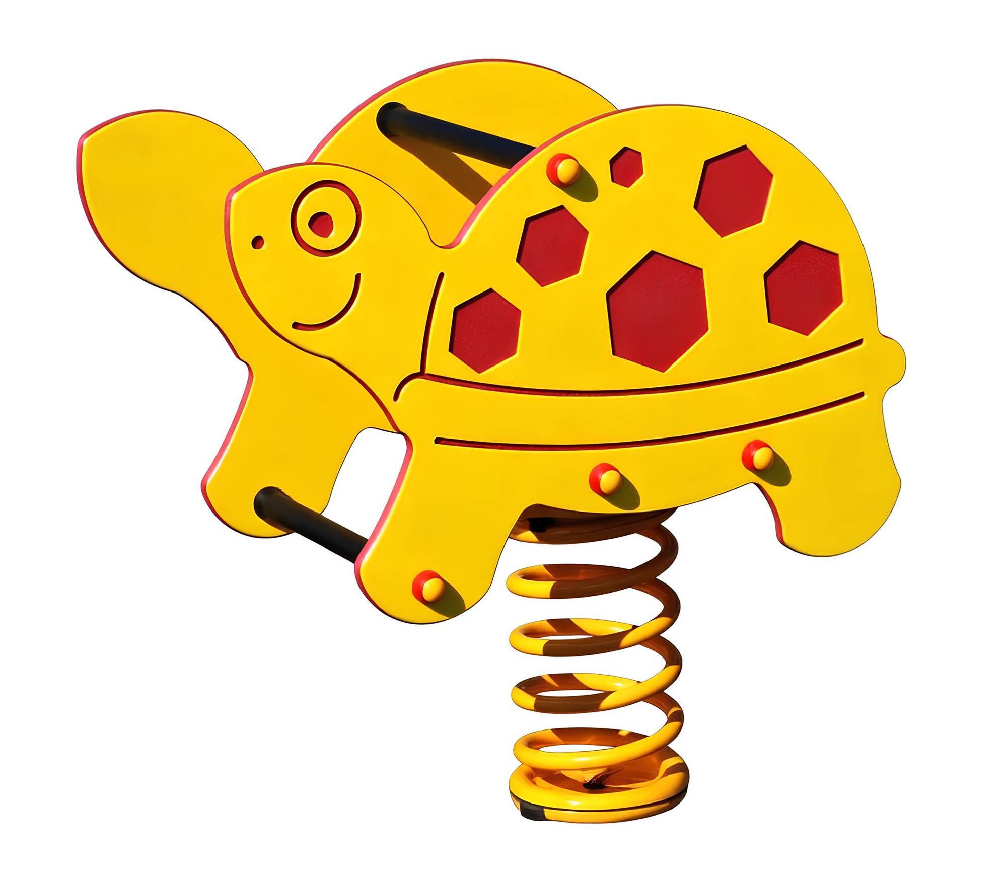 Cod. MG160 TARTARUGA A MOLLA composto da n.2 sagome in materiale plastico ad alta densità colorato e completamente riciclabile con spigoli arrotondati. Completa di sedile interno e n.2 maniglie per appoggiare le mani e i piedi.